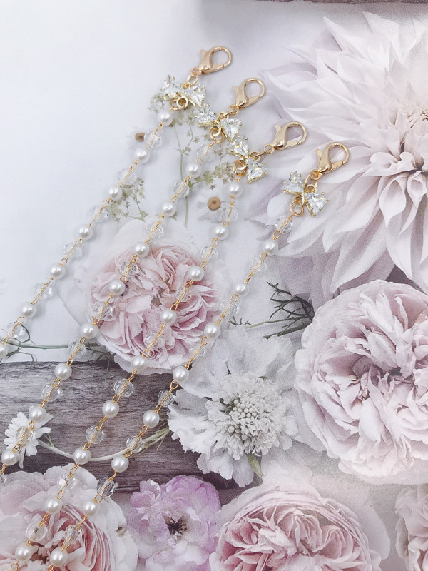 시아422디자인 반짝반짝 리본 진주구슬 마스크스트랩 : Komvote